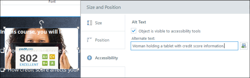 Learn how to create accessible eLearning by adding accessibility text, closed captions, and keyboard shortcuts.